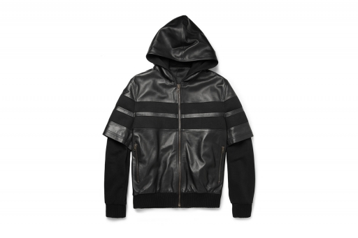 由设计师 Riccardo Tisci 领衔的法国高端时装屋 Givenchy 此番抢先释出 2013 秋冬系列中的这款 Double-Sleeved Leather-Stripe Cotton Bomber Jacket。在改良 Bomber Jacket 的轮廓上,以两件式拼接的设计塑造层次感,内层采用优质面料打造,确保秋冬季度穿着的舒适度,而连帽外层则以光亮上乘皮革为主,并以金属拉链、口袋以及横跨胸前的黑色条纹作为细节突显型格,整体设定不禁让人联想到去年秋冬的 Leather & Quilted Neoprene Hooded Jacket。