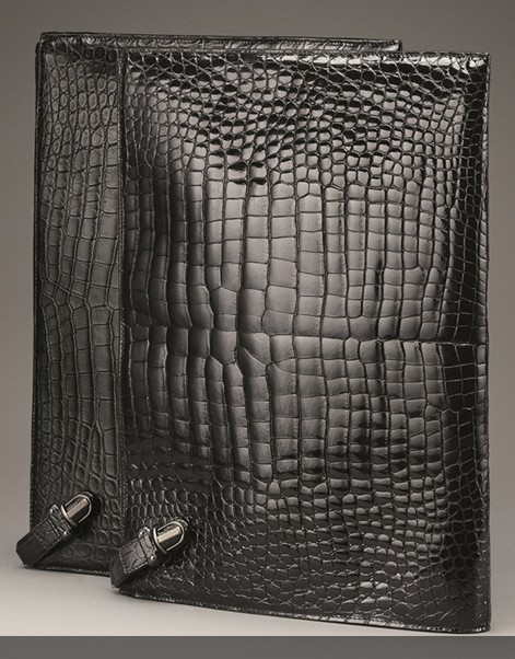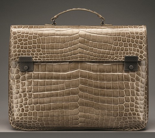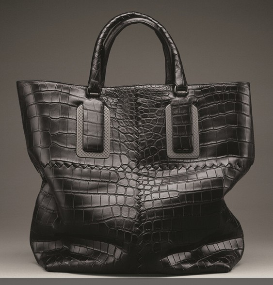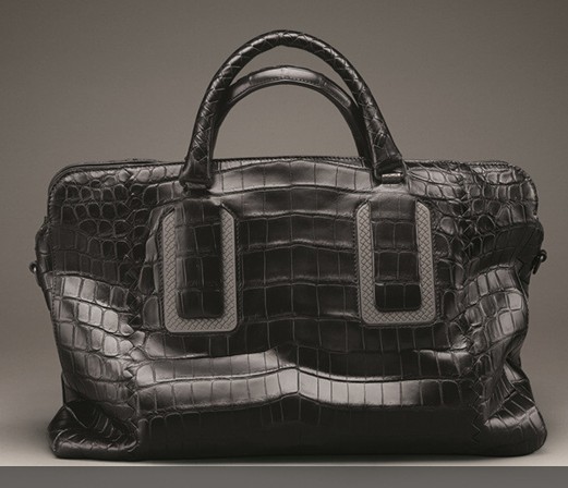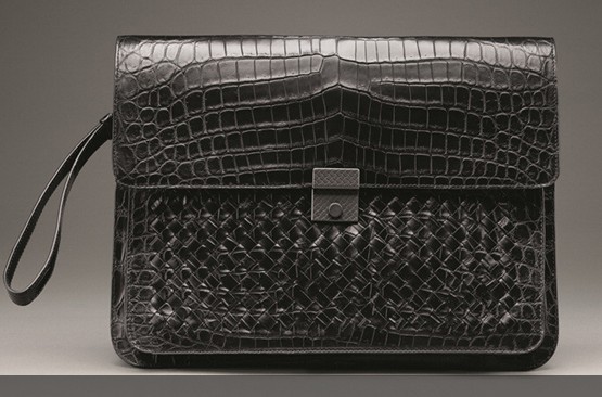 Bottega Veneta男士2013秋冬季皮包,特别为上班一族而设计,款式庄重而讲求实用性。鞋款则结合传统的概念与新颖的处理手法,款式包括loafer、扣带靴、及绑带舞鞋,当中不少款式配搭以不同皮革、鳄鱼皮及麂皮。而图案及印花袜则是本季最热配饰。