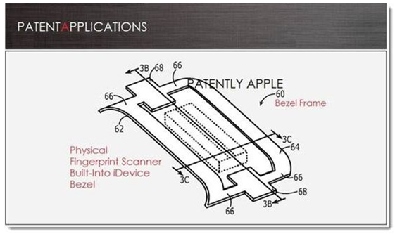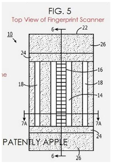 在这项专利的说明中,苹果详细地展示了指纹识别传感器的内部结构,并说明了相应的工作原理。苹果表示用户在触摸传感器时,传感器内部的边框部分会发出一股微弱的电流来激活传感器的指纹识别功能。另外,苹果还说明了传感器和边框的组合方法。