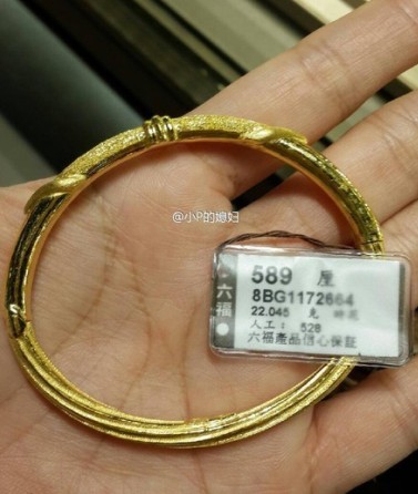 最近的金价很美好,也不管以后是不是继续跌了,找了代购终于出手了六福竹节手镯