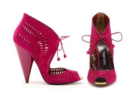 艳丽的正红色、魅惑的紫罗兰色和紫红色,神秘的黑色是汤姆·福特(Tom Ford)2013春夏鞋履的主打色彩。此次2013年汤姆·福特 (Tom Ford)秋冬系列鞋履再次延续这些经典颜色,曲线形鞋跟、金属踝镯、豹纹印花、鳄鱼皮材质、金属细高跟等等,一切的一切都会让汤姆·福特 (Tom Ford)2013秋冬鞋履成为女人的宠爱单品。