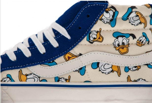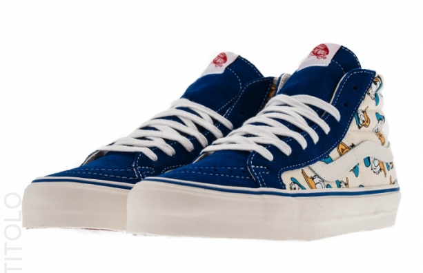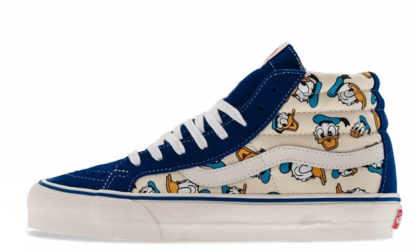 Vans Vault 与 Disney 联名推出以 Mickey Mouse 和 Donald Duck 為主题 SK8 HI 鞋款, Mickey Mouse 以红色的麂皮製造,鞋身的布料印有Mickey Mouse 多个不同表情的图案, 另外 Donald Duck 版本就以蓝色麂皮製造,也是印有 Donald Duck 多个不同的表情。