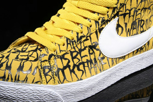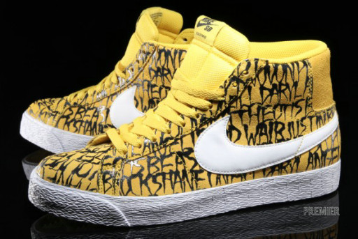 Nike SB 今年后半年即将发布滑板影片《The SB Chronicle Vol.2》,为影片造势,找来其作品被誉为“城市的一道曙光”的纽约街头涂鸦艺术家 NECKFACE 推出 Blazer SB High 合作鞋款。用典型的Neckface 字体将参与《The SB Chronicle Vol.2》拍摄的滑手名字写于鞋品上。基调则是选用《The SB Chronicle Vol.2》的影片配色芥末黄+白来表现。并将在6.21滑板日正式在全球Nike SB指定零售商发售。喜欢滑板的朋友千万别错过。