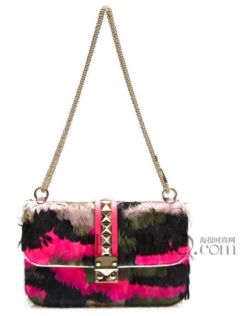萤光粉、荧光黄、天空蓝等亮丽的色彩,以及迷彩图案、海军条纹图案的加入,让华伦天奴 (Valentino) 2014早春的配饰充满新意,以往的Valentino“仙女”在这一季仿佛变成了一个大胆追逐色彩的时髦女郎。
