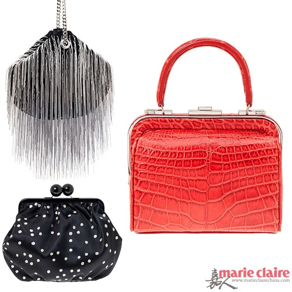 Giorgio Armani 2013秋冬手袋神秘华贵,深色调为主,神秘黑色宝石配饰如星光点点的晚宴包,散发神秘耀眼光芒,大气沉稳又不失奢华的挎包,飞扬的钻石流苏手袋,一一彰显浪漫独立女性气质。
