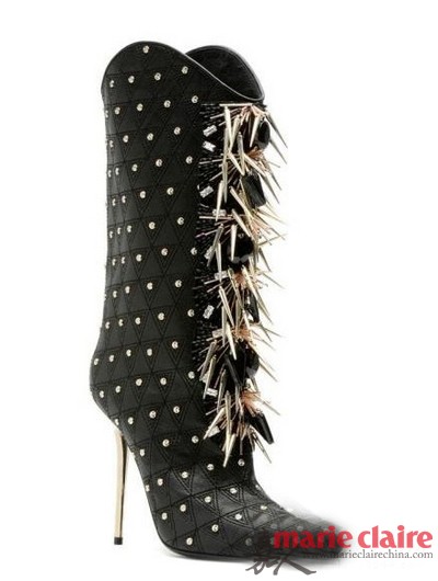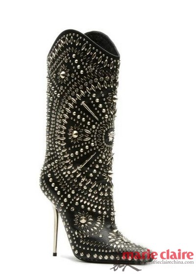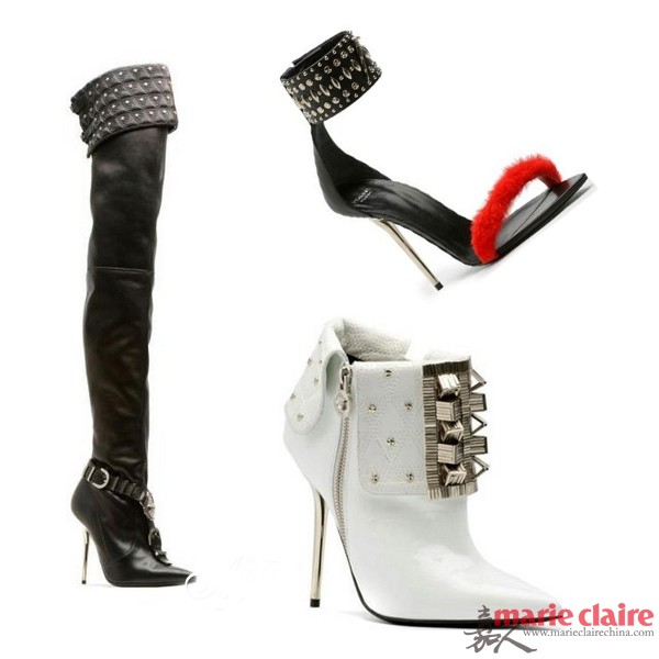 范思哲Versace发布2013秋冬新款女鞋,尖、细、锐利的朋克感扑面而来!设计师Donatella Versace选择了“朋克”这个主题,她用大量光亮的皮革、PVC材质,尖锐的银色铆钉,以及范思哲标志性的张扬性感,来诠释自己对“朋克精神”的理解。将“glam”(华丽) 和“punk”(朋克) 结合于一体。