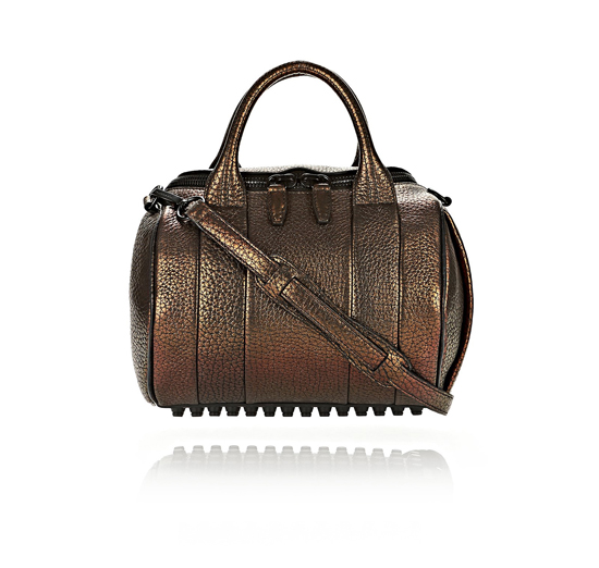 你热情的一颗心,再次献给 Alexander Wang 吧!早前分享的 Resort 2014 系列,竟然能在黑白无彩世界里寻觅到粉色的踪影,这全新的尝试无非是给我们一个大惊喜啊。「坐稳了基石,才能出走向外挑战。」这是那天我浏览官网上的 New Arrival Bags 之后,浮上心头的第一个想法。从品牌经典的 Rocco、Diego 包款,到后来加入的 shoulder bags 系列,都被赋予了新的面貌;虽然不是大张旗鼓地改头换面,不过藉由皮革选择、鞣皮等制成技术的运用,让牛皮和羊皮的纹理有了更丰富的变化。当然,颜色方面也注入些许新鲜气息,橘棕色、沙色到带有金属感的灰色,难道 Wang 哥准备一步一步地踏进色彩之地了吗?