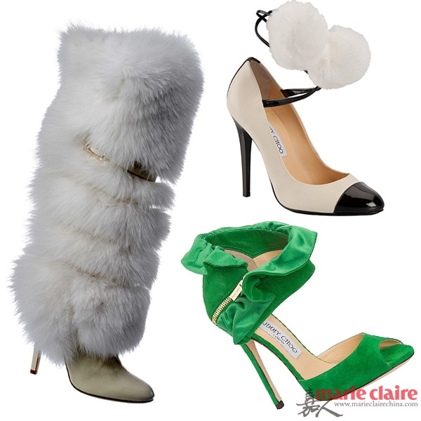 Jimmy Choo2013秋冬系列鞋履,透过一系列具有时尚张力的设计表达蠢蠢欲动的情感与欲望,更将女性的脚踝及足部刻划成全新的性感地带。完美的细跟尖头高跟鞋附上绒球点缀,网纱镶嵌宝石让肌肤若隐若现,闪亮的色系搭配唯美的设计,真是非常的仙范儿。