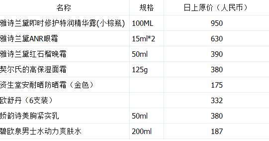 以下是我在日上收集部分化妆品价格,对比日上和香港专柜(不含sasa、卓越、万宁、屈臣氏),日上还是很有优势的,所以大家能在日上买还是日上买吧。当然日上没有的就到香港买啦,反正香港各种化妆品店遍地都是,采购起来挺容易的。