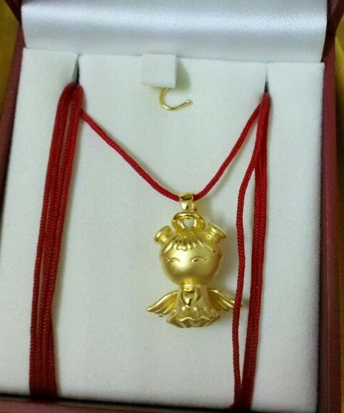 经过周大福的时候,发现黄金、白金九折均打九折。最终受不了诱惑,买了一个平安宝宝的小吊坠和一条白金项链。