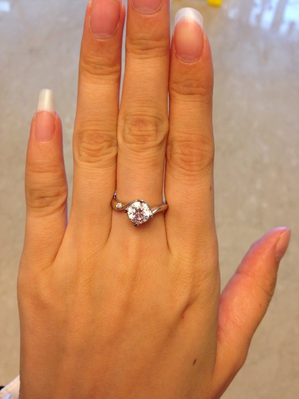 闪闪4C:1.1CRT H色 VS2 3EX 无萤光,六福‘爱很美’海报款,边上有个一分的小钻,老公说他就像那颗小钻一样守护着我!忽略楼主难看的小手哈!