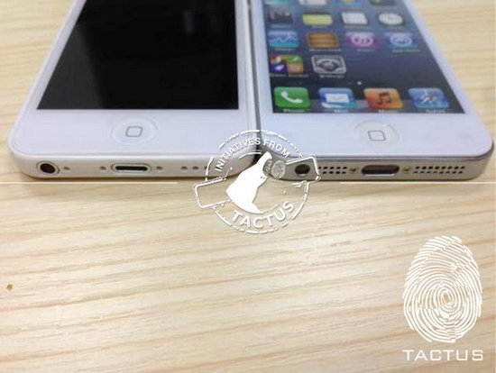 而通过与iPhone 5的真机对比,我们还可以确认廉价版iPhone确实配有4.0英寸触控屏,所支持的分辨率应该与iPhone 5保持一致。至于该机的其他功能规格方面,博客网站Tactus这次没有披露更多的信息,但根据此前泄露的消息显示,廉价版iPhone将会装载由三星生产的1.23GHz主频的H5P双核处理器,拥有1GB的RAM内存,内置800万像素摄像头和配有LED闪光灯,并支持FDD 4G网络和蓝牙4.0等功能。