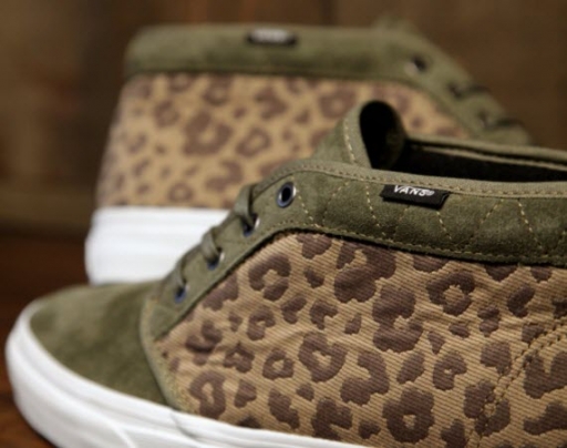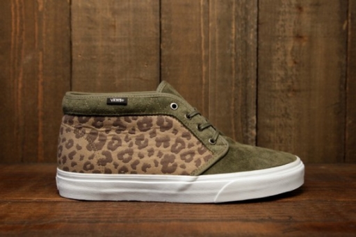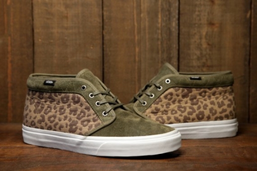 迷彩和豹纹在2013年夏季显得十分火热,而今VANS CALIFORNIA将这两种元素融合进了一双新款的CHUKKA之中。在鞋子的配色上,VANS采用了葡萄叶绿加沙漠棕的方式构成鞋面色搭。而作为亮点的LEOPARD CAMO则以豹纹和迷彩相融合的方式进行了融合。作为一双在夏季推出的鞋款,鞋子的面料采用轻质麋皮材质进行裁剪,而白色的硫化鞋底也使得鞋款本身清爽不少。喜欢在夏日刷街的板仔们,不妨关注吧!