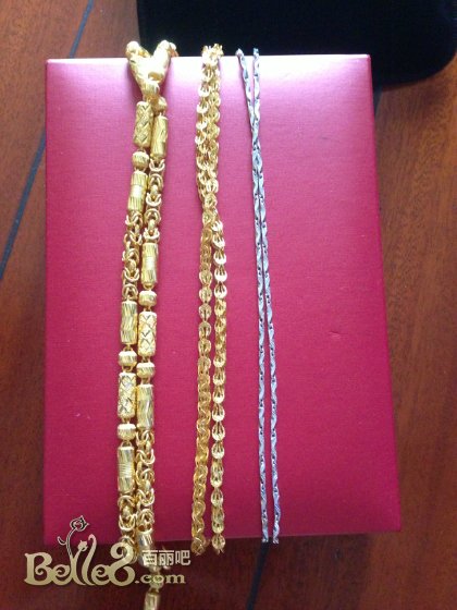 周大福买的是粗链子,细白金链是六福买的,周大福的白金饰品都按件算,不老合适的,我就没买~真心的不是我俗,那边金价这么便宜,我动心了