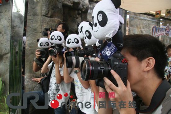 摄影记者面对熊猫频频按下快门