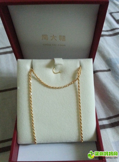 原本是想买纯金链的来配之前买的吊坠,看了很多都没喜欢的,最后选了条18K金的,折后价是2600多港币。今天香港那边的金价是377港币一克。