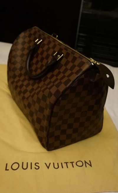 作为入门包,我在【speed棕棋盘】和【neverfull白棋盘】中纠结,还是选了前者,我喜欢什么都装进包里,所以买了35,老实说放着比拎着要好看,因为放了东西会有点变形。