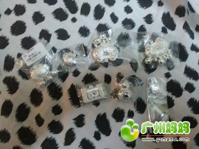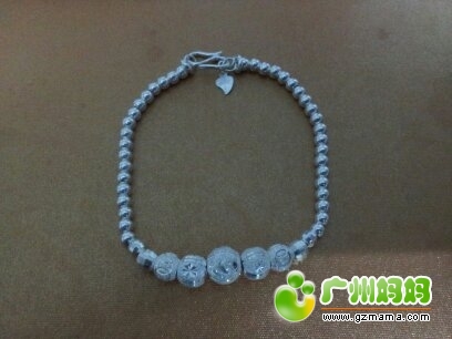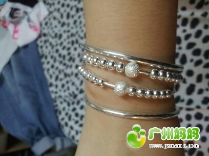 大热的正生银,一对光身可调的港币430,每个重19.6g;有走珠的一对港币220,每个重11.8g,,,哈哈,现在全部戴在我右手腕上。很漂亮哟。