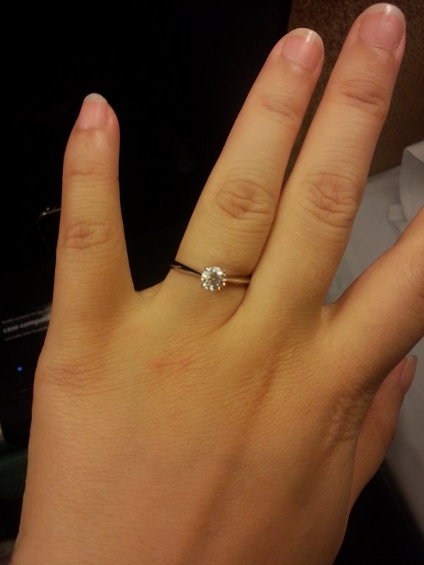周生生的钻戒。。42分 G VS2 3EX NONE。。因为提前预约了很久。。人家帮忙留的一款性价比超高的。。拿了另外几款对比。。这款火彩真的很好。。