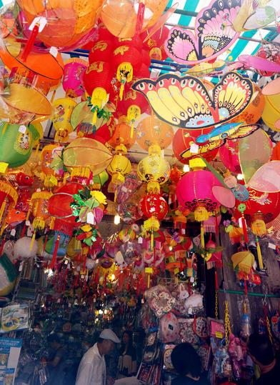9月9日,临近中秋佳节,香港市面琳琅满目的各式灯笼陆续上市,今年有不少造型奇趣的电子环保花灯,吸引市民选购。 中新社发 洪少葵 摄