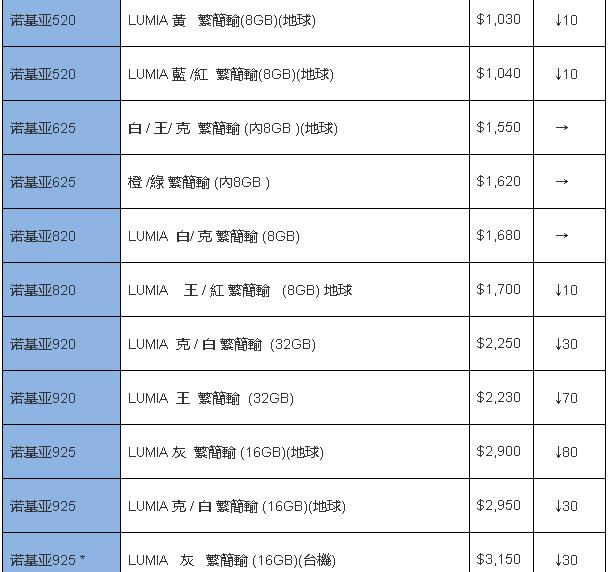 如表内涨跌栏为空白,则表示上期没有这款手机报价。本次报价对比上次2013年10月9日报价。