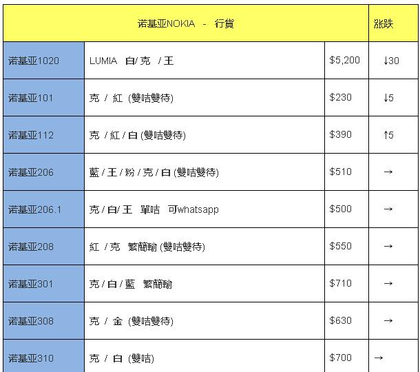 价格参考:各位到商家那里买手机可以以这份报价单作为参考,以下报价单位均为港币。具体是1000元以下的手机加80港元商家就肯卖了,而1000-2500元的手机需要在报价基础上加100-120不等,报价在2500-5000元的手机需要加150-200元不等,而5000元以上的一般需要加价250元。仅作参考,但一般商家不可能低于这个价格出售,除非是极个别渠道,否则就是有猫腻。