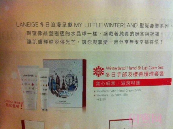 套装3:兰芝冬日手部及樱唇护理套装 价格:230港币