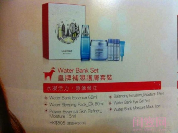 套装2:兰芝2013圣诞限量皇牌补湿护肤水凝活力六件套装 价格505港币