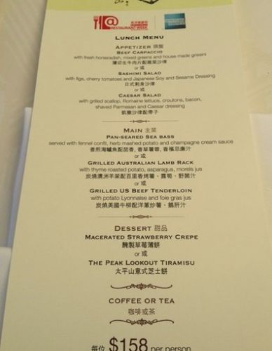 香港太平山餐厅餐牌