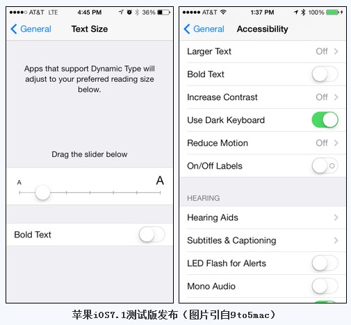 可以看出,苹果iOS7提供给用户更多的自主设置选项,将其变得更加的人性化。估计iOS7.1之后还会有相应的测试版跟进推出,目前尚不能确定该版本系统的正式版在2013年底前是否会发布,以近期苹果的更新进度来看,预计很有可能。