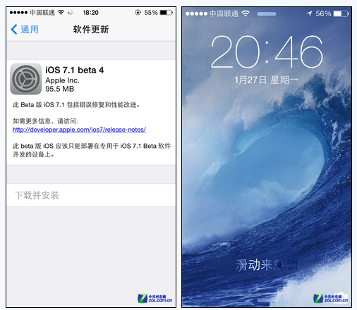 http://mobile.zol.com.cn/431/4312529.htmlmobile.zol.com.cntrue中关村在线http://mobile.zol.com.cn/431/4312529.htmlreport1294从iOS7.1 beta3问世之后,苹果显然加快了测试系统的发布速度。仅仅相隔两周,我们就又迎来了全新的iOS7.1 beta4版本。如果你之前是iOS7.1 beta3用户的话,那么这次iOS7.1 beta4的更新容量则为95.5MB。看似较大容量的背后,都有哪些不一样的操作体验...