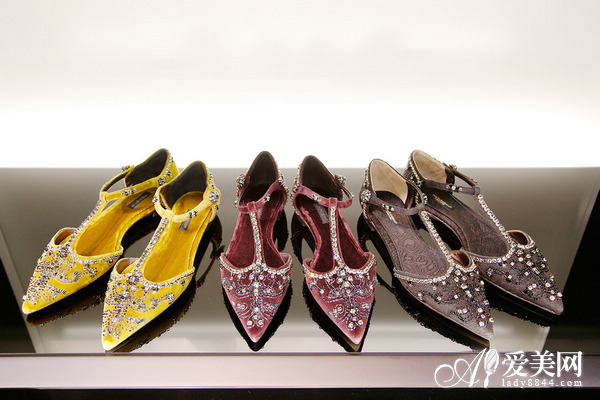 镶满了水钻的尖头平底凉鞋,是今年十分流行的款式。