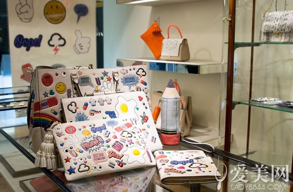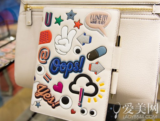 Anya Hindmarch2015春夏系列手包曝光!记得中学时女同学们的书包总贴着各种花炫的贴纸、徽章,每个书包都有属于主人气质的独特效果。于是Anya以此为灵感,新一季手包系列,以白色的皮质为基底,搭配上色彩缤纷卡通式图案。