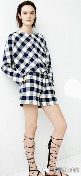 飞袖格纹上衣$ 499.00 格纹高腰短裤$ 499.00