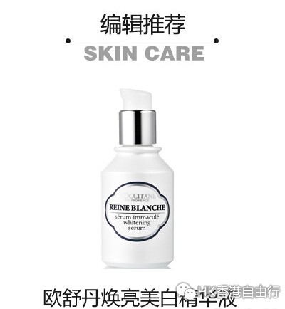 欧舒丹焕亮美白精华液:这款精华液焕亮美白,能有效击退黯沉、泛黄,提升肌肤光感,使肌肤由内而外释放出宛若白雪皇后般光芒,焕发真正的透、亮、焕白神韵。