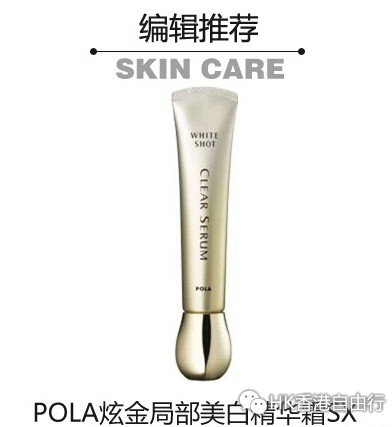 POLA炫金局部美白精华霜SX :这款精华霜含独特美白成分,是一款“点美白”神器,针对黑色素的“过脂化”,抑制黑色素生成的局部精华霜,让肌肤由内而外散发晶莹剔透光泽。