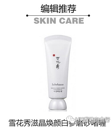 雪花秀滋晶焕颜白参磨砂啫喱 :这款磨砂啫喱可以说是“角质橡皮擦”,让肌肤奢享由尊贵白参雕琢出的净澈柔润。蕴含纯天然白参颗粒,加速气血循环,修复受损肌肤,温和去角质的同时提亮肤色。这是由内焕出层层莹白剔透的美白革新。