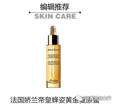 法国娇兰帝皇蜂姿黄金复原蜜:娇兰的这款黄金复原蜜采用的是纯种乌埃尚岛法国黑锋蜂蜜,这种成分比起普通蜂蜜拥有更强的修护力,这种蜂蜜的修复能力是其他传统修护成分的数倍,能够复原、紧致肌肤。