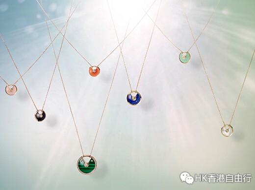 Amulette de Cartier系列选用独一无二的天然宝石,寄托美好祝愿。蛋白石、青金石和孔雀石,还有红玉髓、绿玉髓、珍珠母贝或缟玛瑙,缤纷丰富的宝石在珠宝臻品上施展动人魔力。在耀目黄金的包覆下,它们完美寄托佩戴者的炙热情感。