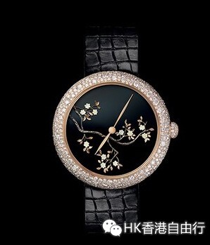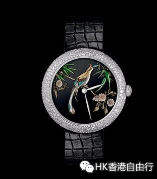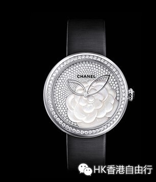 在香奈儿的设计里当然不能少了山茶花的角色,其中一款铺满钻石的錶面上有彩珠光泽的山茶花为装饰,另外还有栩栩如生的花卉和小鸟图案,华丽却散发淡淡雅緻。