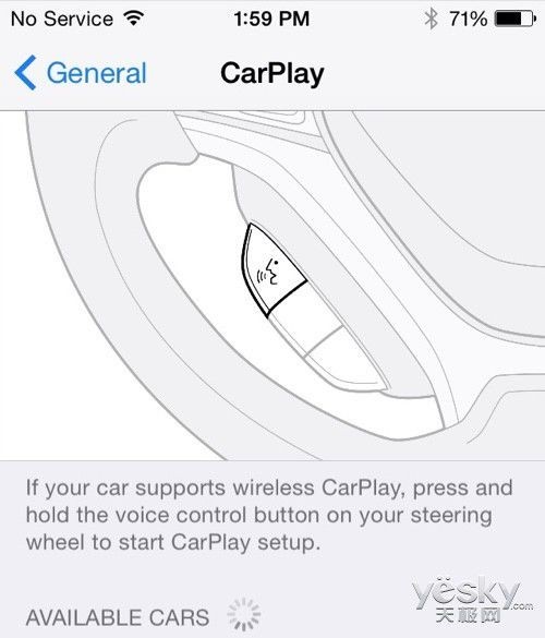 下图中的 CarPlay 设置位于设置应用的通用功能,在 Siri、Spotlight 搜索、Handoff 和建议应用下。目前,iPhone 只能通过 Lightning 接口与 CarPlay 连接。