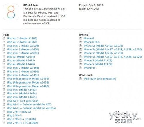 iOS 9 的代号为 Monarch,科罗拉多州的另一处滑雪胜地。而在今天推出的iOS 8.3第一册测试版可能会让 Apple Pay 很快进入中国,一周前发布的 iOS 8.2 第五个测试版也正在测试之中。iOS 8.3 的编译号为12F5027d,这次发布的还包括 Xcode 6.3 测试版以及 Swift 1.2。