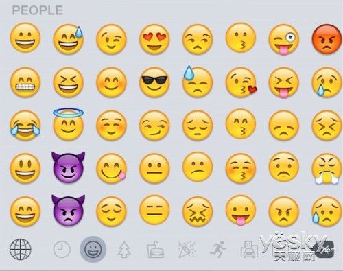 iOS 8.3 还带来了全新 emoji 表情选择器,与 OS X 10.10.3 测试版中的相同。全新 emoji 表情选择器将所有表情归属在一个页面,下方有类别选择器,不过 iOS 8.3 测试版中的 emoji 选择器似乎不支持肤色变化。