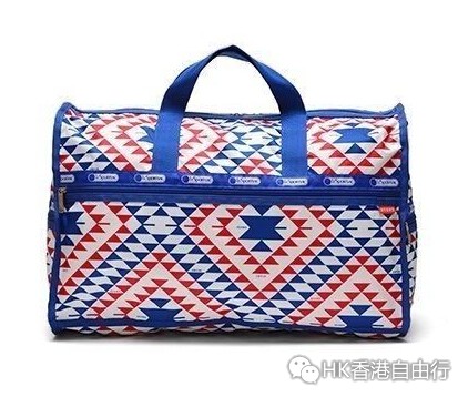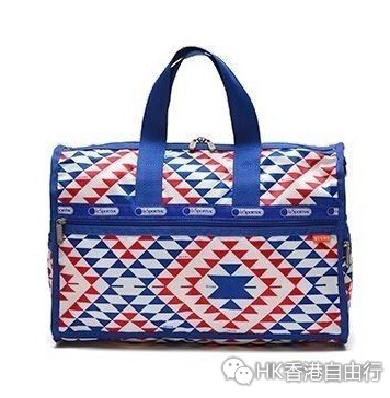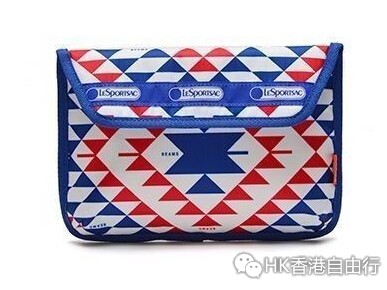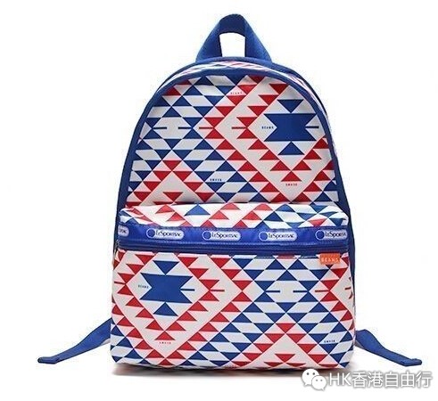 美国包款品牌LeSportsac与知名潮流品牌Bwams合作推出以红、白、蓝色的几何图形建构出代表美国文化的印地安图腾花色包包。