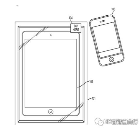 苹果这项新专利申请描述了一种贴有“对准这里”的标签,用户可以通过NFC技术(近距离通信)和蓝牙让现有设备与新设备进行“通信”,比如传输设置信息、锁屏图片库、用户信息,甚至已安装应用软件。这样,当用户从包装盒拿出新设备后,就可以直接使用了。
