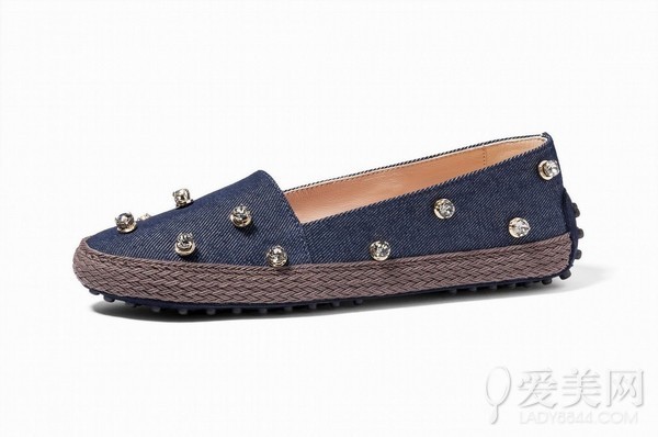 Tod's这款草编豆豆鞋,在鞋底保有品牌标誌性的豆豆胶粒,鞋子侧边仿效传统草鞋编织方式製作,缀以可爱的金属或水钻装饰,透气不咬脚,肯定让女孩子爱不释「脚」。