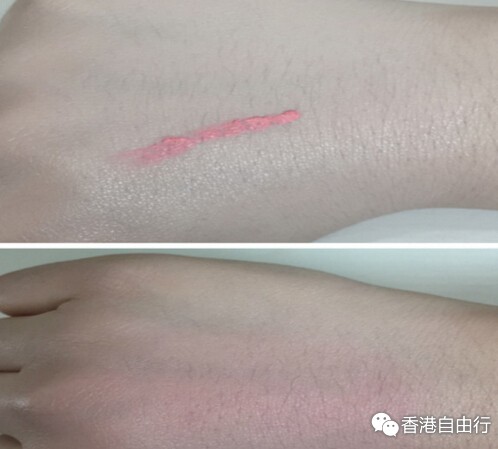 评测结果:将这款腮红涂抹于手背上,上手的颜色十分柔和,十分活泼的粉色。自然透露出一种少女的气息,半天之后观察手背发现色彩还是完好的,腮红丝毫没有褪色的迹象,可以得出它的持妆时间还是蛮久的,所以如果你使用了这款腮红,一定要进行彻底的卸妆。