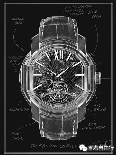 3300型机芯的构造,桥板的镂雕和裁切,各个零件的布局,设计都是原创的,充满当代感和对比感,以展现机械装置的精细与美态。此外,BVLGARI决定将整个设计重新再造,也是为了腕表的功能。面盘挂在内表圈环,顶部的刻面蓝宝石水晶镜面,做工与打磨工序极为复杂。它有助提升报时机制的共鸣,同时也改善了机械装置侧面的能见度。敲击杠杆也重新再造和摆位,以达至最佳的操作性能。最后,表壳本身亦经重新设计,新表壳的体积更纤薄。