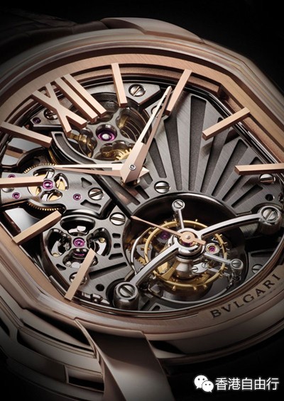 这款Carillon Tourbillon钟乐报时陀飞轮腕表,可说汇聚了所有的技术与美学工艺,而瑞士的制表大师们亦没忘记预留充足的空间来发挥意大利设计风格。意大利灵感是BVLGARI设计的背后动力,而这款腕表的轮廓,精致的建筑构造,便散发出强烈的意大利风味。现时世上能由头到尾自家设计和生产大复杂腕表的表厂为数极少,BVLGARI是其中之一。在一个讲求简便的世界,有时候可说过于简化的世界,宣称能驾驭复杂精密的工艺,绝非等闲,而且不断创新的BVLGARI亦交出了亮丽的成绩,证明品牌的工作坊确实有此等功力。