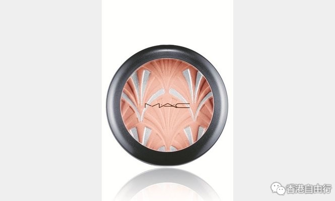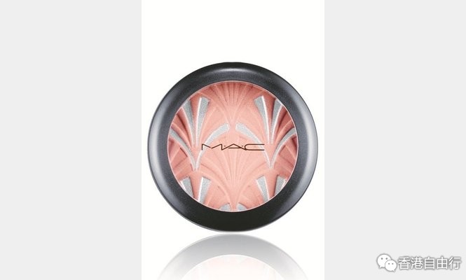 图中左边的尖型帽饰极具1920年代Art Deco的风格, M.A.C借此创作出high-light powder,以香槟色配上银色,并以扇型几何图案点缀,艺术气息浓厚。
